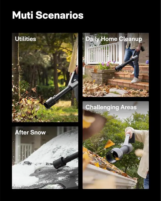 RETRACTABLE SIPHON TUBE: Easily switch between high-air-volume and high-speed modes via the adjustable siphon tube. The HOTO leaf blower effortlessly handles challenges from large piles of leaves and light snow to wet leaves, gutter dust and even stubborn debris