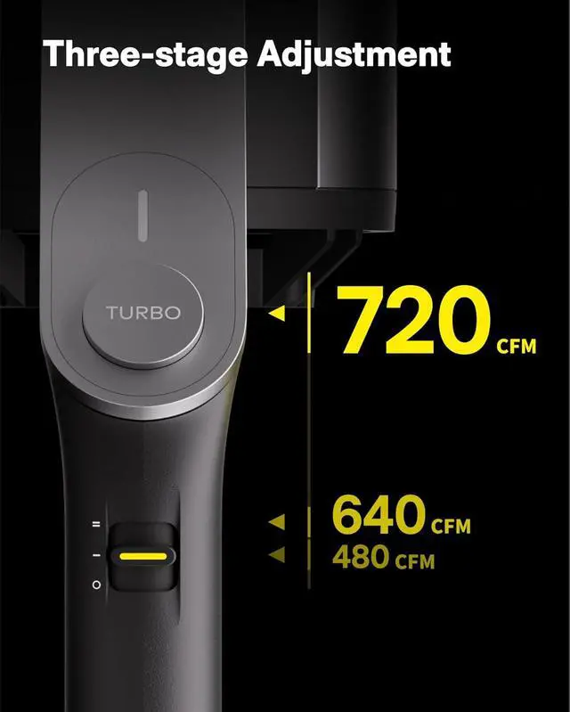EXCEPTIONAL POWER: Activate turbo mode to deliver up to 720 CFM with 120 MPH to power through wet leaves, caked on grass, rocks and other heavy debris. HOTO cordless leaf blower features three gears: 720/640/480 CFM to meet all your cleaning needs