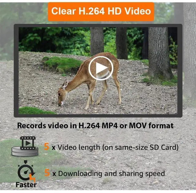 Records amazing smooth 1080p or 1296p video with clear audio. Videos are well compressed in H.264 MP4 format (average ~1MB/s), significantly reduce file size, downloading and sharing to family or friends is more quicker than traditional game cameras. The MP4 video is also most compatible with any players.