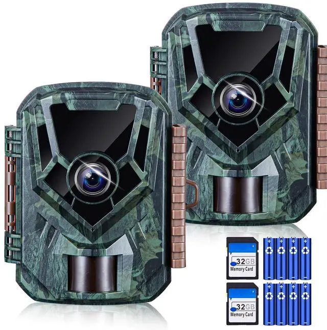 2 Pack Trail Cameras 36MP 2.7K, 32G SD Card and 8AA Batteries, Game Camera with Night Vision Motion ActivatedWaterproof lP66 0.1s Trigger Time w/ 130°Wide-Angle TrailCam for Wildlife Monitoring