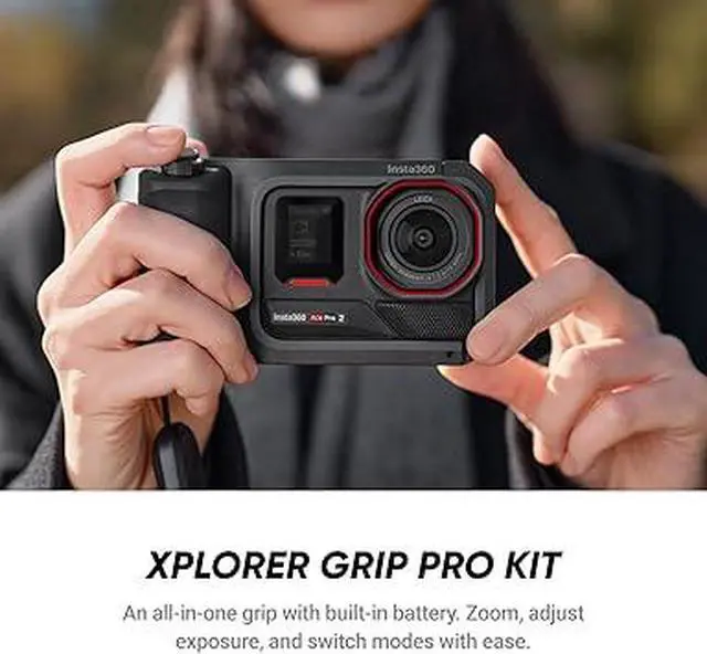 FRESH NEW LOOK, OLD-SCHOOL STYLE: Stand out with the Xplorer Grip Kit, designed to transform Insta360 Ace Pro 2 into the ultimate tool for street photography and urban travel. Includes a Grip for added comfort, Utility Frame and Wrist Strap for extra protection, and decorative cold shoe accessories.