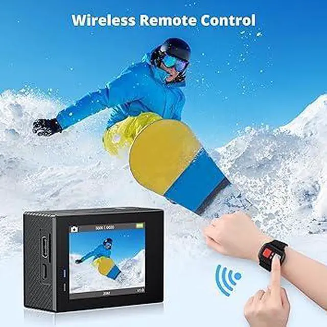 131FT Waterproof Camera and Dual Screen: Place your action camera into the waterproof case and securely fasten it, then you can dive below 40 meters. This underwater camera is ideal for water sports such as swimming, surfing, diving, etc. Equipped with a 2 rear screen and 0.96 front screen, you can effortlessly shoot in various scenarios, ensuring you get the perfect shot every time.