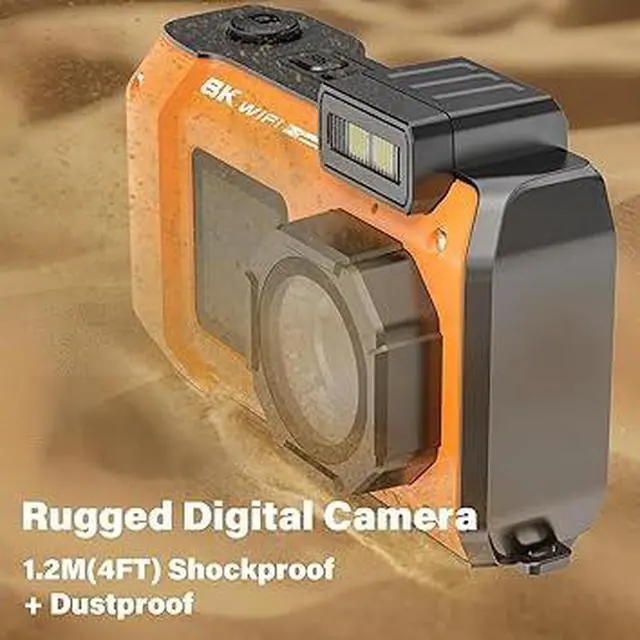 8K UHD 70MP WiFi Digital Camera with 64GB Card Rugged Waterproof Dustproof Shockproof Dual-Screen Selfie 33FT Underwater Camera for Snorkeling Autofocus Point and Shoot Digital Camera Orange