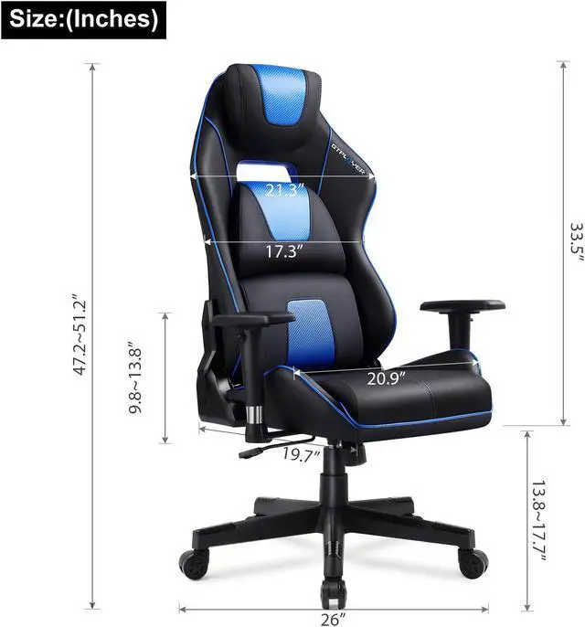 10cm Height adjustable makes this chair suitable for teenagers and adults; 360° swivel; Up to 150° reclining; rocking function; 3D adjustable armrests; triple Back Support; silent multi-direction smooth rolling caster.Sitting area dimension: 50cm (L) x 53cm (W).Max load: 300 lbs.