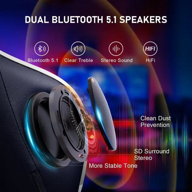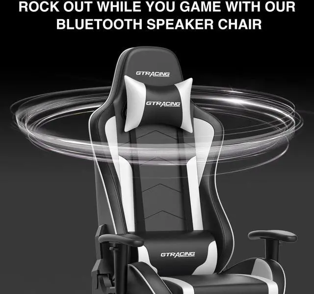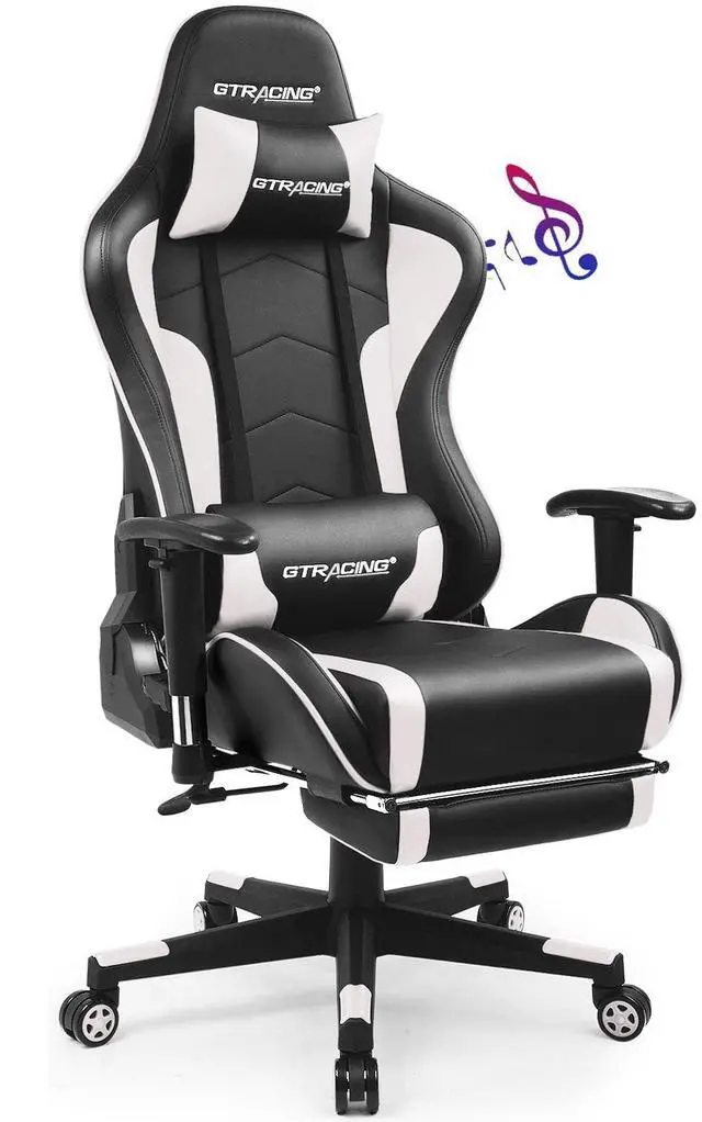 Music Gaming Chair: Original designed with two Bluetooth speakers. the surround sound system brings out the best in your entertainmentconnect it to your smartphone, tablet or other bluetooth enabled devices, and enjoy music, mobile game or movie with thrilling, cinema like sound from the comfort of your gaming chair.