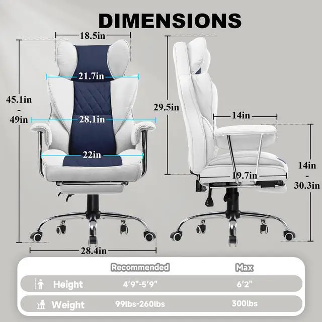 Suitable for All This computer chair offers a flexible recline ranging from 90° to 135°, it accommodates various activities like work, reading, entertainment, and relaxation.