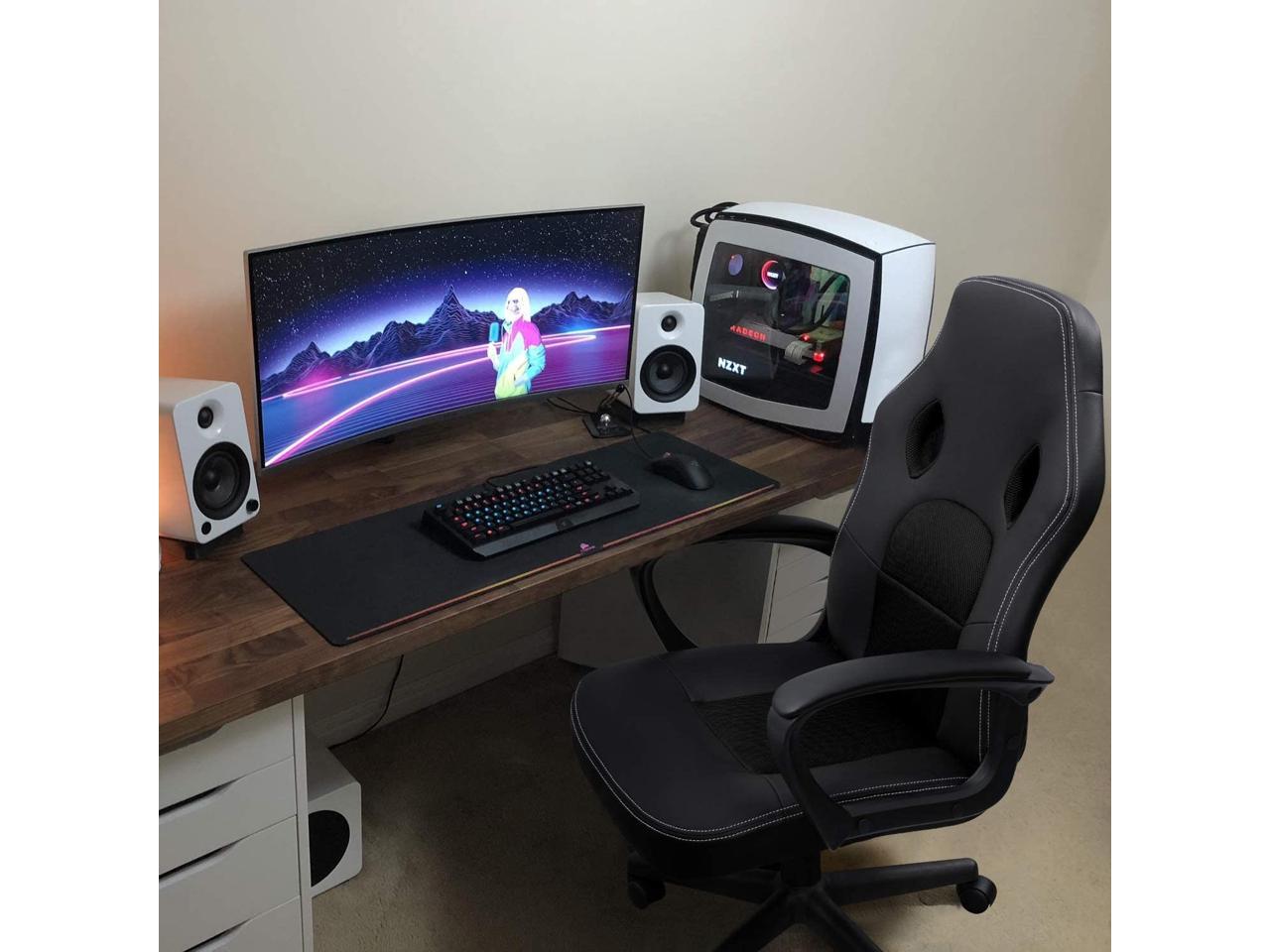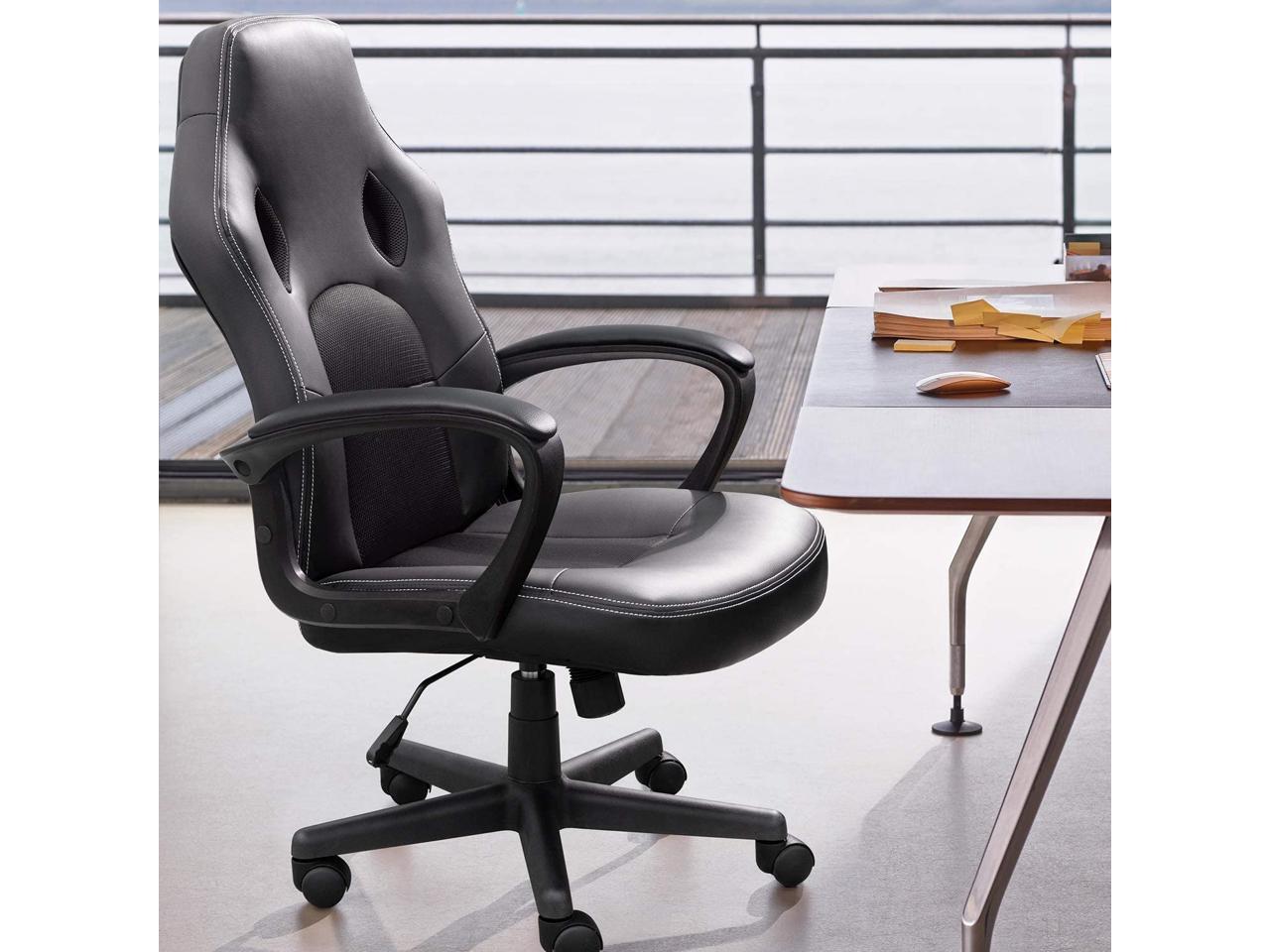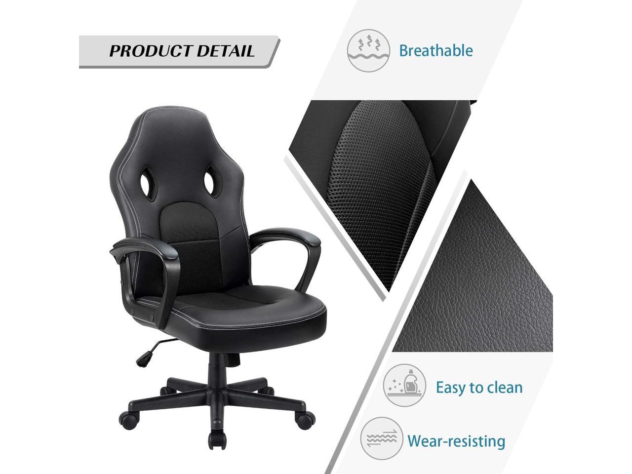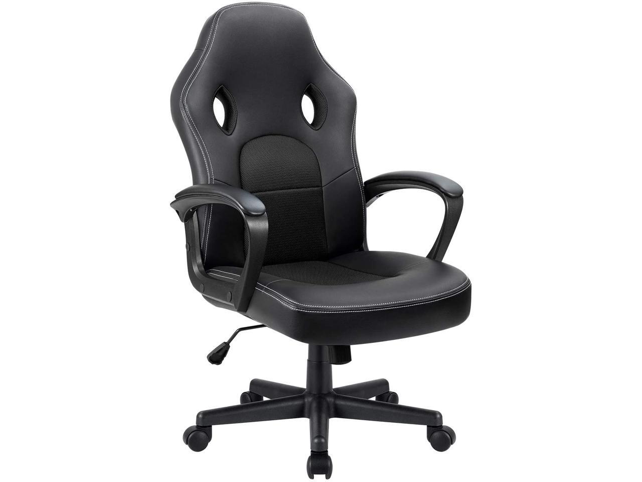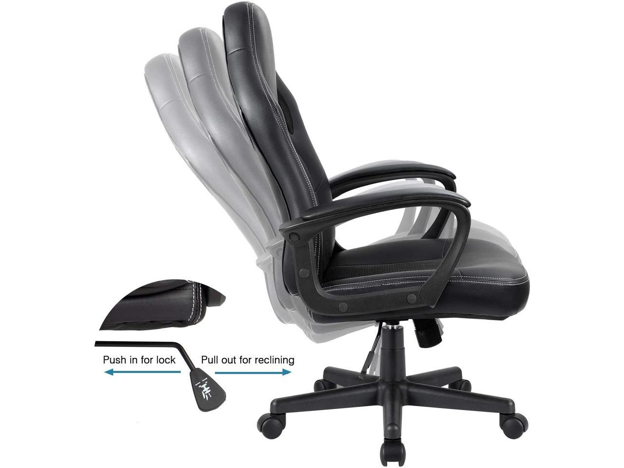 Office Desk Leather Gaming, High Back Ergonomic Adjustable Racing Task Swivel Executive Computer Chair Headrest and Lumbar Support (Black
