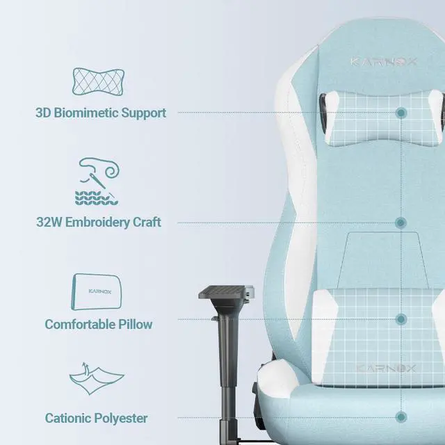 [Skin-Friendly Gaming Chair]:Karnox Gaming Chair is made of high-quality fabric for racing chairs, which is easy to clean, comfortable and won't peel easily, and the cushion is made of integrated high-density foam(the 53kg/m³ integrally foam, which is much higher than the standard of 30kg/m³), it is very suitable for sedentary and won't collapse for 10 years, so that you can release the pressure from the tired state, relieve fatigue, enjoy games,work or life.
