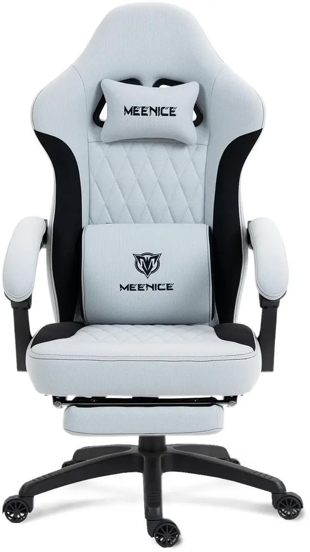 Gaming Chair Fabric with Pocket Spring Custion, Ergonomic High Back Video Game Chair with Footrest Massage Lumbar Support, Height Adjustable Comfy Computer Chair for Adults Game Office Grey