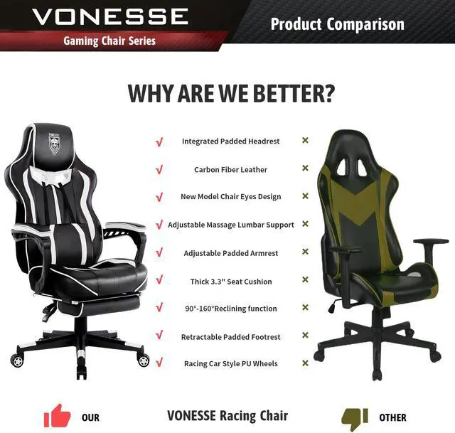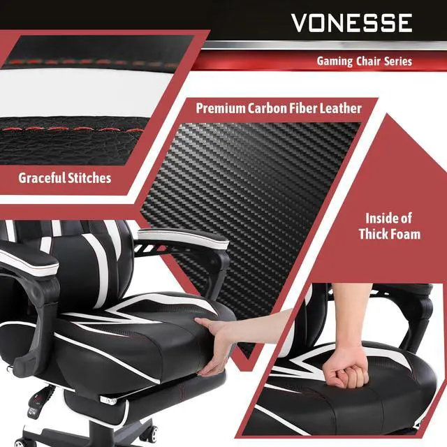 Vonesse 3 Setting Massage Gaming Chair with Footrest, New Release!