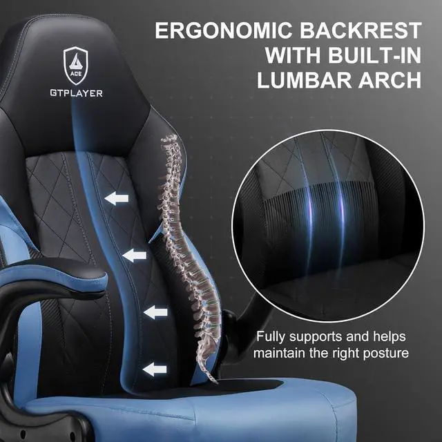 Ergonomic DesignExperience unmatched support and comfort with the GTPLAYER gaming chair. The built-in lumbar support and ergonomically contoured backrest are designed to align with your spine, reducing pressure on your lower back.
