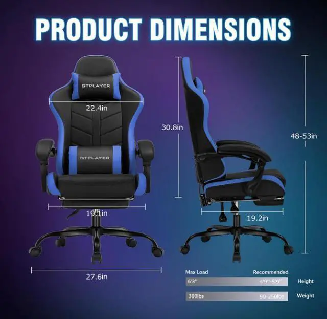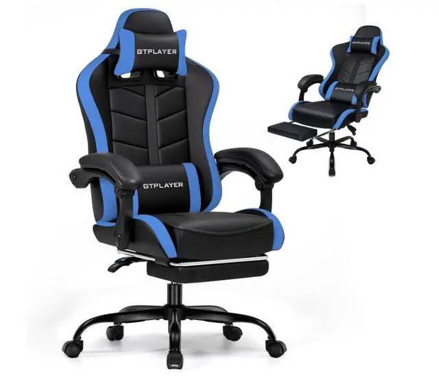 GTPLAYER Gaming Chair with Footrest, Ergonomic Game Chair for Adults and Kids, Adjustable Computer Chair with Reclining Function and Comfortable Headrest for Home and Office Use (Blue)
