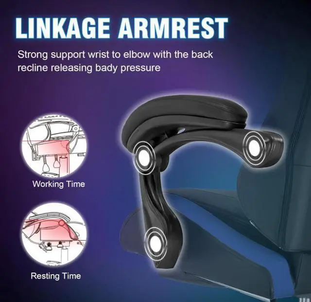 Ergonomic Support: Designed for extended use with adjustable headrest and lumbar pillow to reduce neck and back strain during long gaming or work sessions.