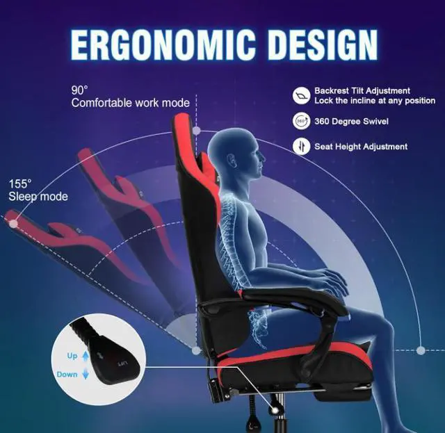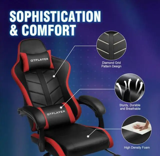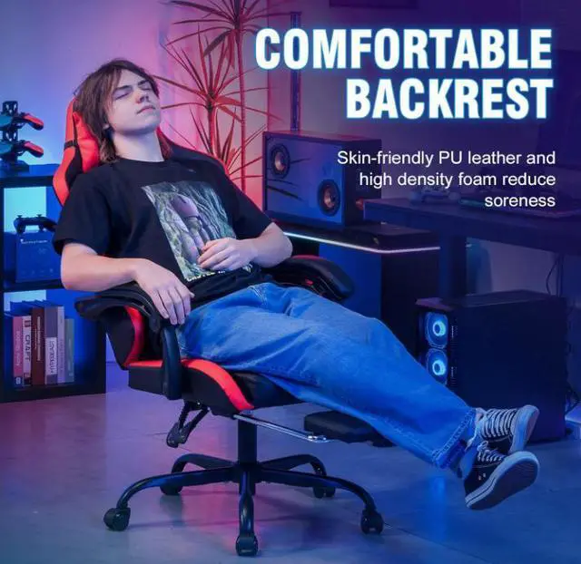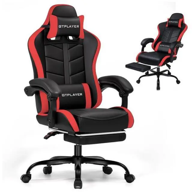 GTPLAYER Gaming Chair with Footrest, Ergonomic Game Chair for Adults and Kids, Adjustable Computer Chair with Reclining Function and Comfortable Headrest for Home and Office Use (RED)