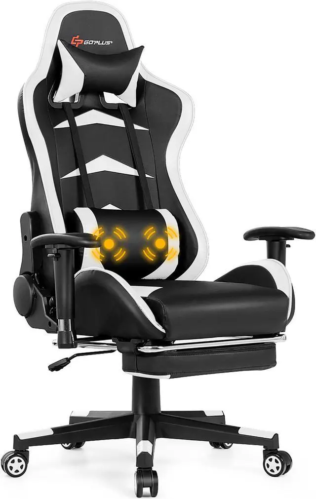 Our gaming chair is all designed for your every need! When you playing game, the height and angle of armrest can be adjusted into a perfect position, making a successful competition. After blood-and-thunder gaming time, you can recline backrest angle and pull out the footrest pad to enjoy a leisure time with TV or have a deep sleep. Our backrest can be changed into maximum 180degree, creating a similar sleeping feeling as on your bed! Supported by iron frame and gas rod, it is stable enough to serve for years. Do not hesitate to add it to your cart!