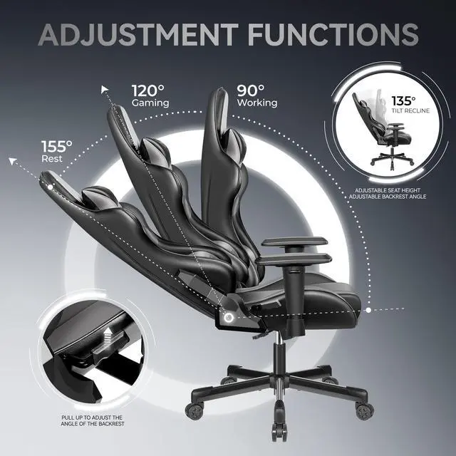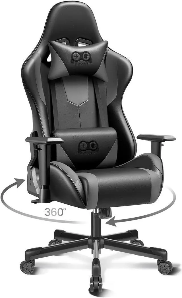 Primy Ergonomic Gaming Chair, PU Leather Racing Style Game Chair, Adjustable Backrest Swivel Ergonomic Gamer Chair Computer Chair with Lumbar Support, Home Office Chair Black/Gray