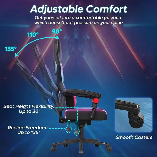 Smooth and Silent Mobility: Enjoy quiet and smooth mobility with the gaming chair, equipped with silent wheels that ensure undisturbed gaming and floor protection