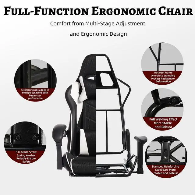 Product Name:DEEPfurniture E-sports Gaming Chair Sports Car Driving Seat PU Material Moulded Sponge Comfortable and Safe With Massage White