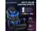 Remote-controlled LED strips on chair back for immersive gaming ambiance.