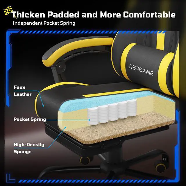 This premium RSPGAME ergonomic gaming chair is a top-tier gift for gamers. Its standout feature is a pocket spring core that provides customized comfort, even pressure distribution, and long-lasting supportideal for extended sessions without sagging or numbness. With a 90°135° recline, smooth swivel base, and built-in footrest, it reduces lower-body strain. The adjustable headrest and lumbar cushion add to its ergonomic benefits. Designed for both gaming and office use, it combines durability, easy assembly, and versatile performance in one sleek package.