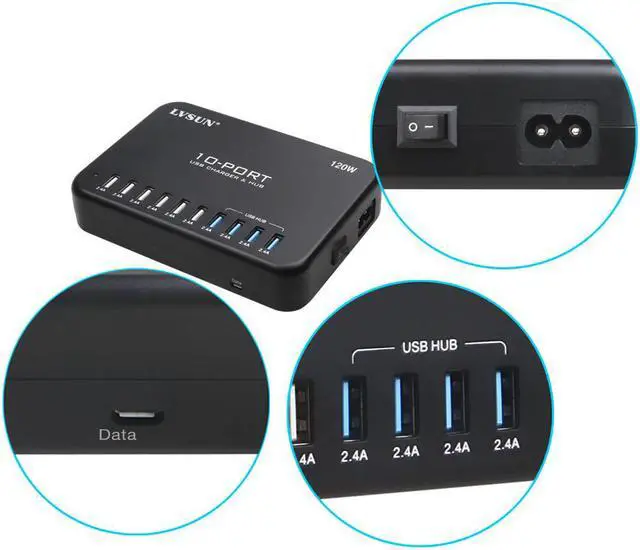 1. LVSUN NO. 1 High Power USB Charger, 120W real Output 2.4 a*10 Fast Charge Smart Phones, Tablets, Digital Camera, Mp3, 4, PSP, etc, fit for School, Coffer house, Wine Bar, Hospital etc.