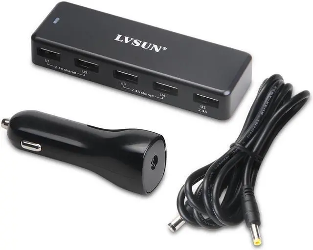 Lvsun Universal Ultra Small Portable USB Car Charger 5 Port Phone Charger Fit for Iphone6 and Samsung Galaxy