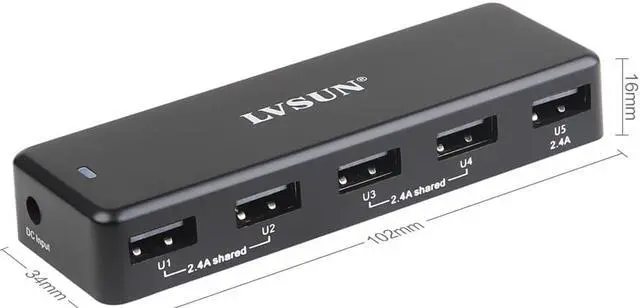 Output: DC 5V 1.2A*4 & DC 5V 2.4A *1 or DC 5V 2.4A*3 Can charge 5 devices simultaneously