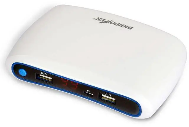15,000mAh portable power bank with dual USB ports Designed to work on all Smartphones Android & iPhones. Dual port standard USB Micro USB port Digital LED charge indicato