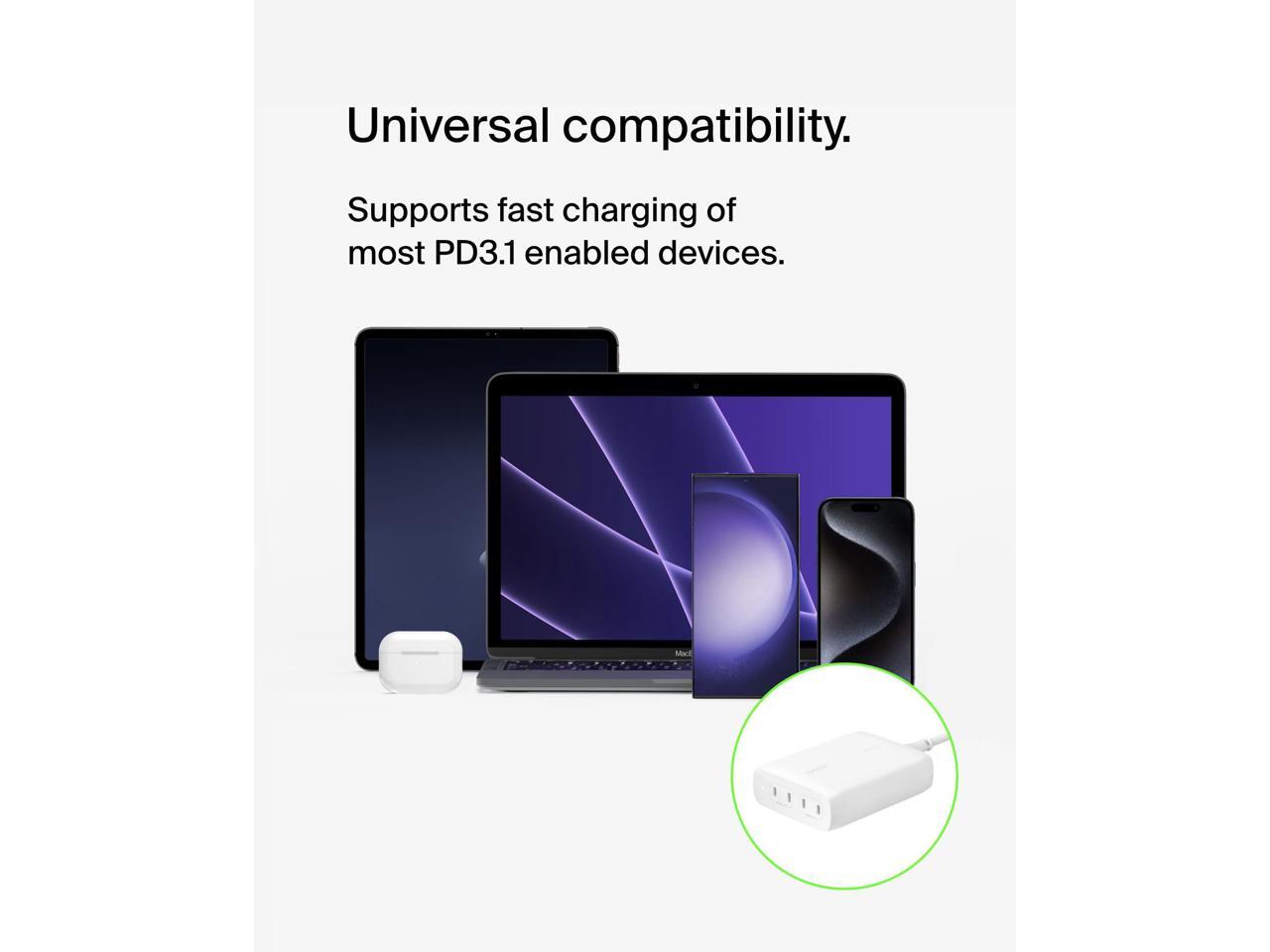 - Universal compatibility to safely support fast, optimal charging of most PD3.1 (EPR) / PD3.0 enabled devices