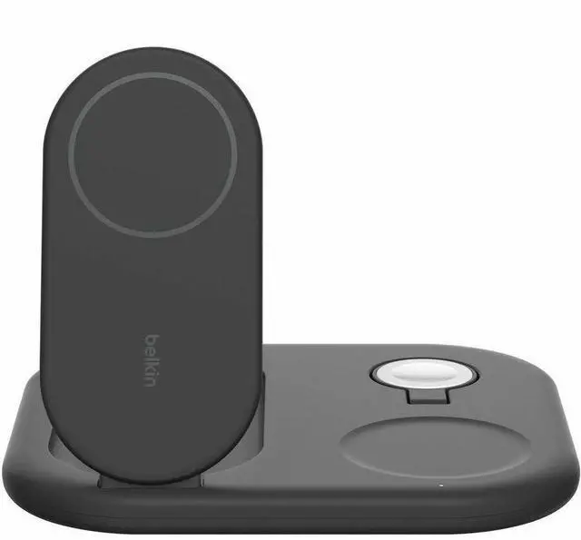 Charge your essentials with an ultra-convenient foldable stand. It delivers 15W of fast wireless charging to your iPhone 16/15/14/13/12, 5W to your Apple Watch and 5W to your AirPods. Leveraging MagSafe compatibility and Qi2 technology, you can place your iPhone on the charging pad for a secure, magnetic connection.
