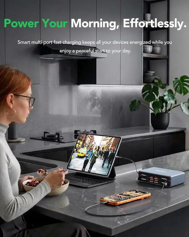 [8-in-1 Charging Station for Multiple Devices 105W MAX Charging Power] This retractable charging station as a dock for all your devices boasting a maximum output power of 105W. It comes with 2 PD 35W USB-C cables 1 USB-C 20W cable PD 20W Lighteing cable 2 USB-C 20W ports and 2 USB-A ports. It supporting fast charging for up to 8 devices at once. Designed for desk nightstand or kitchen countertops this Desktop charging station is an essential item for home office home and travel. [Widely Compatible Desktop Charging Station for Multi Products ] This 8-in-1 charging station widely compatible with iPhone 17/17 Pro MAX/17 Air/16/15 for Galaxy S26/S26+/S26 Ultra/25/Z Fold7/Z Flip7/Z Flip7 FE/Note20 Google Pixel 10/10XL/9 and other Android phones.