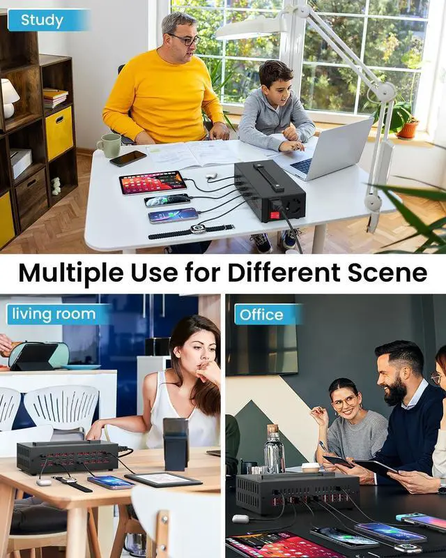 Fast Charging: Equipped with smart charging technology each port delivers optimized power output up to 3A per port ensuring fast and safe charging for smartphones tablets laptops and more. Compared to other low-power USB charging stations this multi usb charging hub offers up to 3x faster charging speeds.