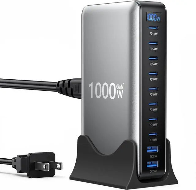 CHARGING STATION: Features GaN IV Pro technology with 10 ports including dual 140W PD ports four additional 140W PD ports two 100W PD ports and two 20W QC ports for simultaneous charging of multiple devices?? DUAL 140W