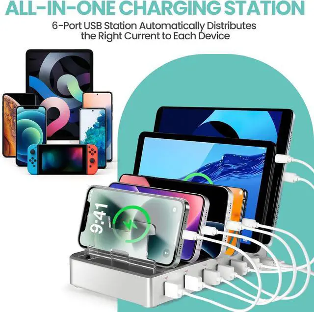 Universal Compatibility: This multi ports charging station works seamlessly with iPhones Android phones iPads Kindles and other USB-powered devicesOrganized and