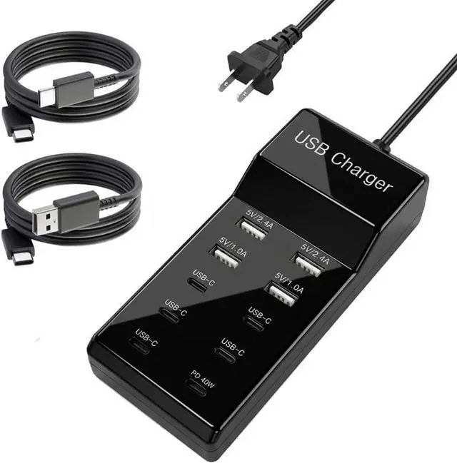 Compact Charger: This desk multiport power adapter includes 4 USB-A ports and 6 USB-C ports you're ready to charge ten of your devices simultaneously. Automatically change the output accordingly ensure a stable voltage to charge all connected devices. UL Certified Safe No Worry Charging: The charger block is builted with safeguards system & obtained with UL certification. Which protect your devices against over-current overload overheating and overcharging and short circuit. Equiped with
