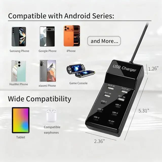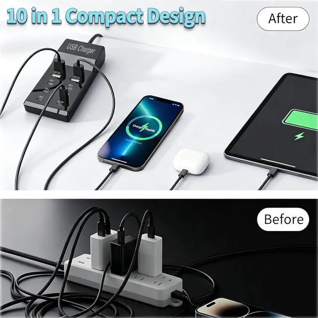 Compact Perfect for Travel: Our USB charger hub is lightweight and all ports in one. Convenience and portability Handy Easy carrying in your bag for anywhere you need to go (home office and traveling).