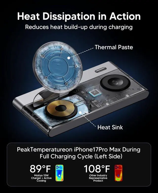 Tip: For optimal wireless charging please use the provided 20W USB-C wall charger.?? Advanced Heat Dissipation & Smart Safety with