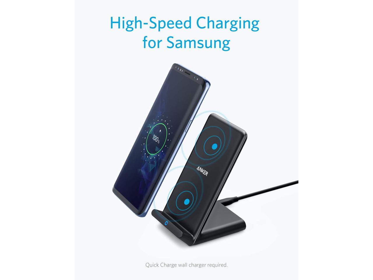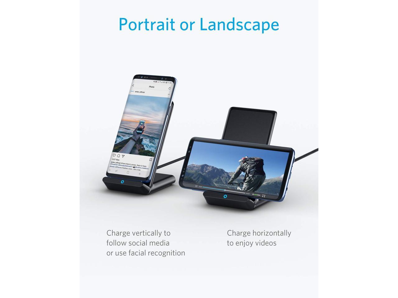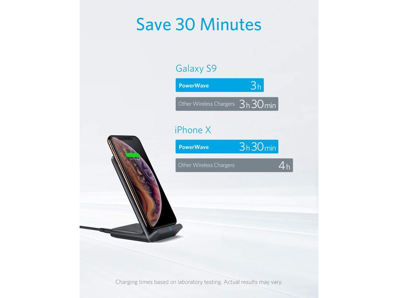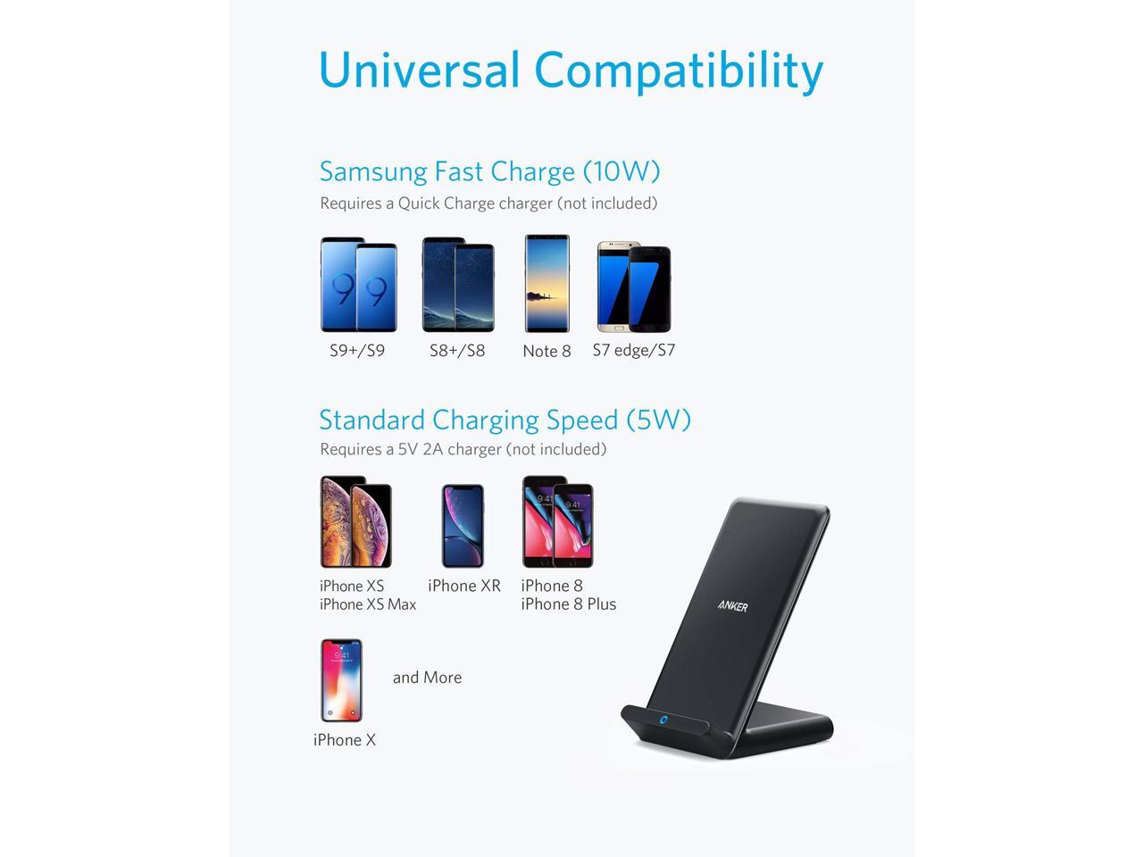 Anker Wireless Charger, PowerWave Stand, Qi-Certified for iPhone 11, 11 Pro, 11 Pro Max, XR, Xs Max, XS, X, 8, 8 Plus, 10W Fast-Charging Galaxy S10 S9 S8, Note 10 Note 9 and More (No AC Adapter)