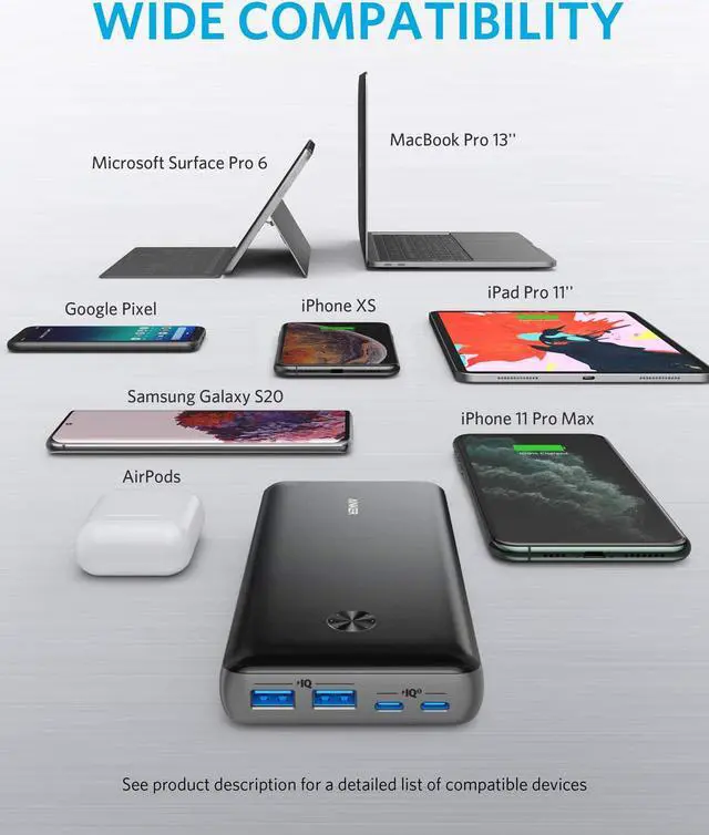 Dual USB-C ports come equipped with Anker's exclusive PowerIQ 3.0 technology to charge a wide range of devices at full-speed.