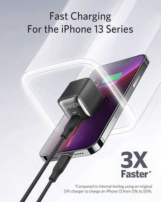 A 20W output is designed to charge the iPhone 13 series up to 3× faster than with an original 5W charger.