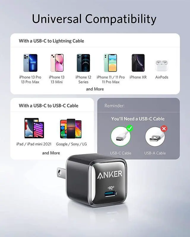 Anker Nano Pro's 20W output is ideal for charging your new iPhone, your iPad, your AirPods, and your Apple Watch.