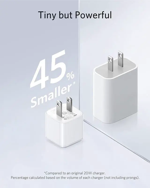 45% smaller than an original 20W charger—but just as powerful.