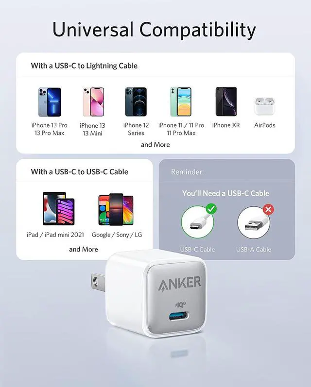 • What You Get: Anker 511 Charger ( Anker Nano Pro ), welcome guide, our worry-free 18-month warranty, and friendly customer service (cable not included).
