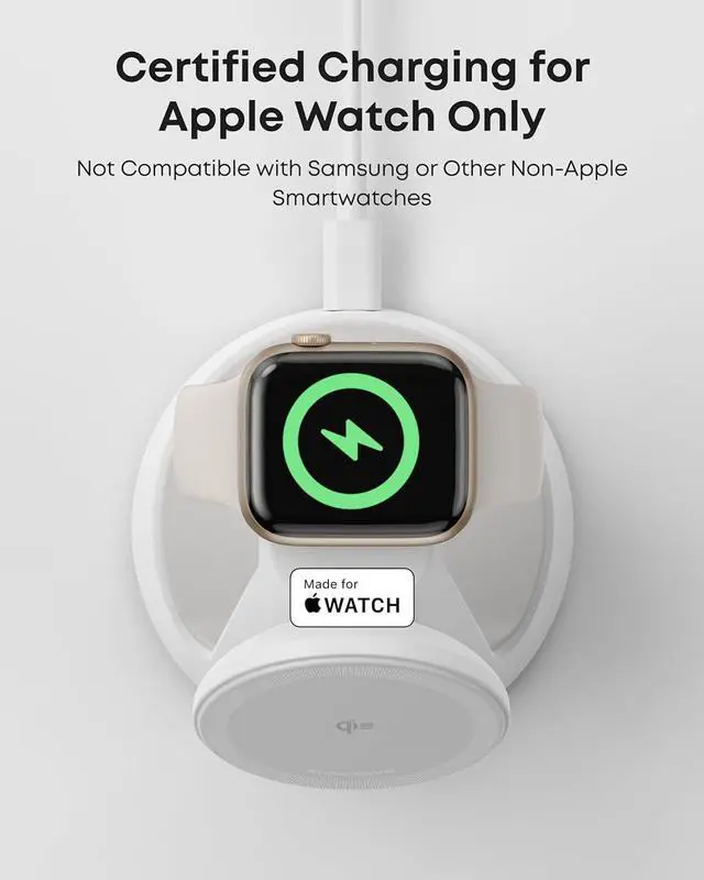 Certified Fast Charging for Apple Watch: Boasts official certification, enabling you to power your Apple Watch Series 10 from 0 to 100% in just 1 hour and 13 minutes. (Note: Data based on internal lab testing; actual charging times may vary.)