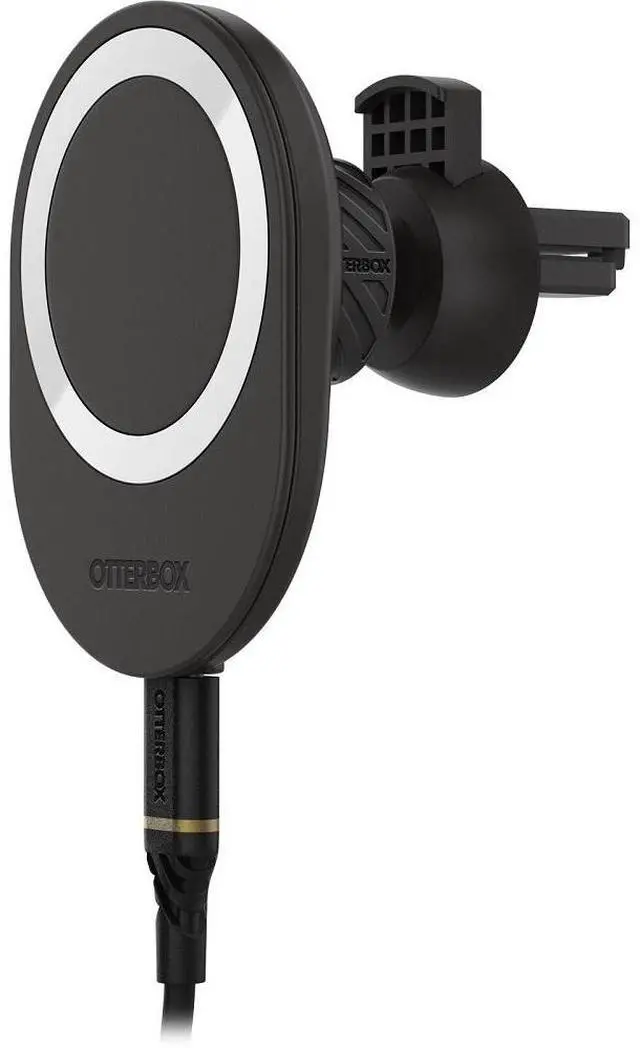 PRODUCT OVERVIEWSleek Wireless Charger Car Vent Mount for MagSafe creates a simple, convenient connection in your car for charging your iPhone between destinations. Simply attach the mount to your vent, connect it to the cable and car charger and youre ready to go far and wide. KEY FEATURESDesigned forseamless interactionwithMagSafetechnologyStrong magnetic alignment and attachment15W Qi wireless charger delivers optimal 7.5W charging speedsOne-of-a-kind glow-in-the-dark ring illuminates mount in low-light settingsMount is powered by fast charging 20W Car Charger and 2M ( 6.6 ft) USB-C to USB-C Cable (included) Secure attachment to vertical and horizontal ventsAdjusts easilyfor optimal viewing and accessHolds the phone securelyin landscape and portrait positionsDesigned for seamless interactionwithMagSafe technology
