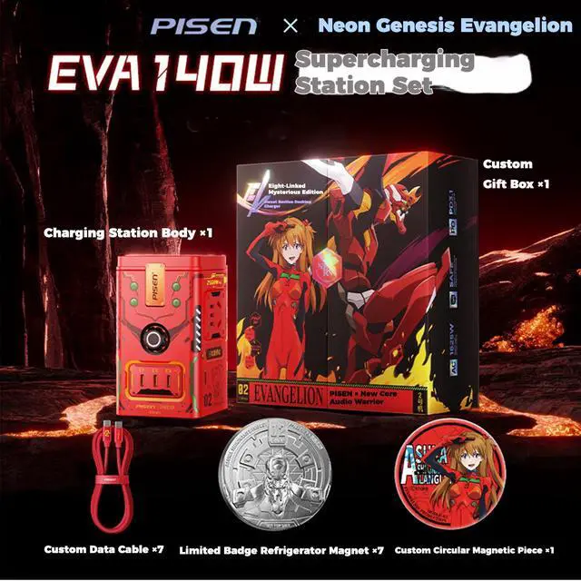 PISEN EVA Asuka 140W GaN Magnetic Wireless Charging Socket, 10-in-1 Portable Fast Charging Station, Efficient Heat Dissipation, Compatible with iOS, Android, Windows, and macOS Devices, Red