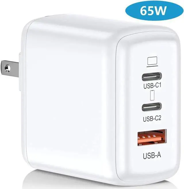 The 65W USB wall charger has 2 USB-C charging ports and a USB-A charging port, which can fast charge your phone, apple watch, laptop, or other devices at the same time.