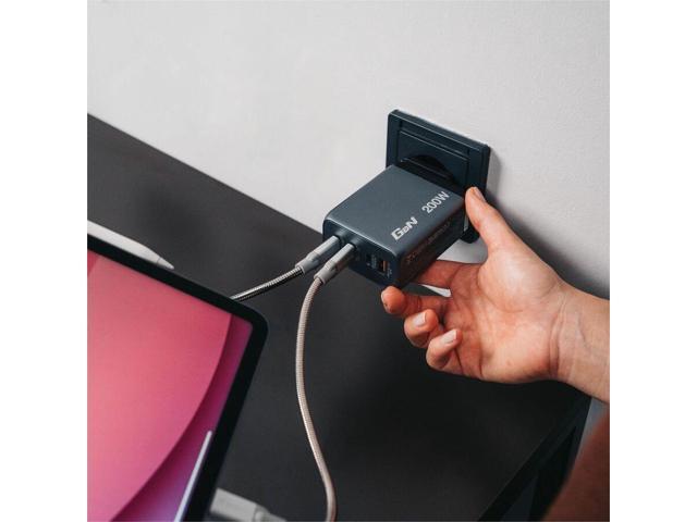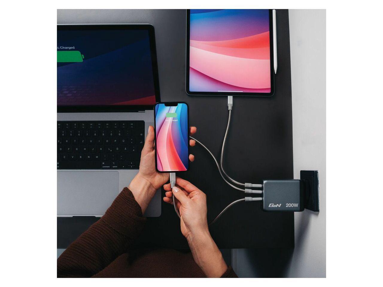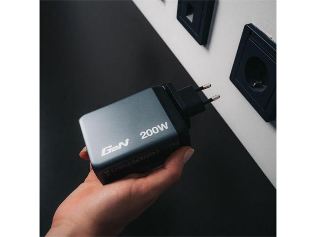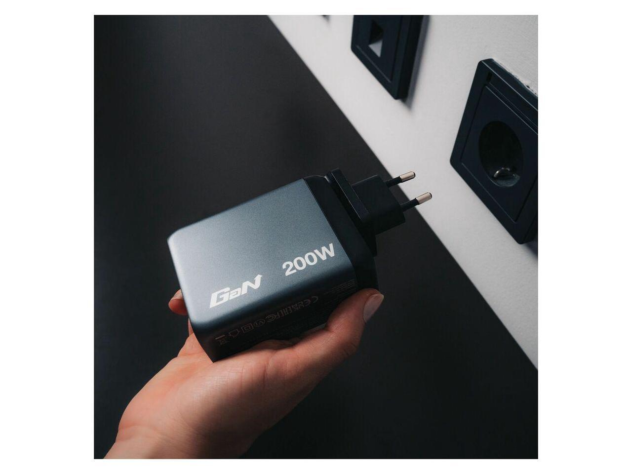 Supports charging of up to four devices simultaneously with a maximum total output of 200 W.