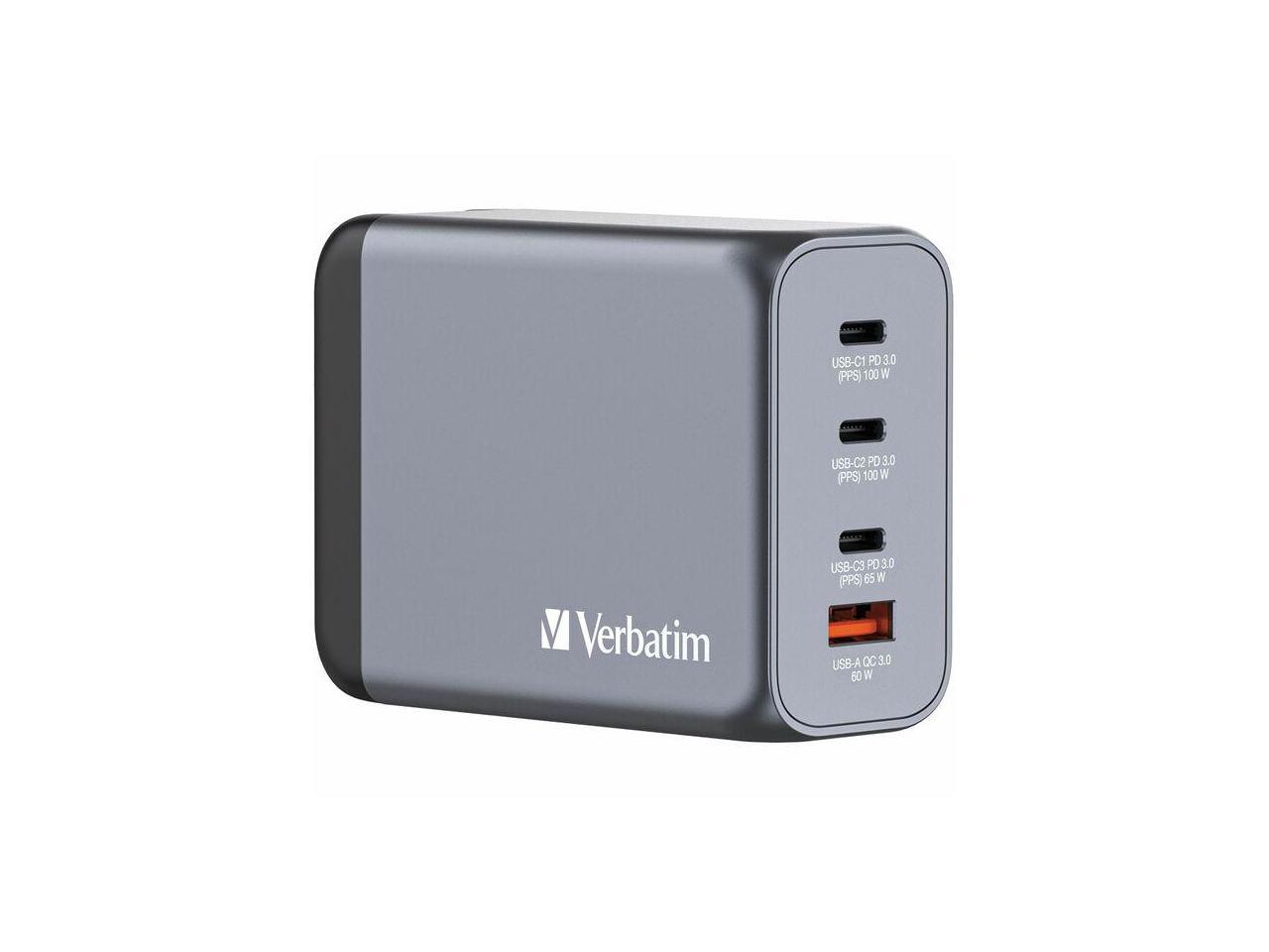 Verbatim 32204 200 W 4-Port GaN Wall Charger - Black/Gray