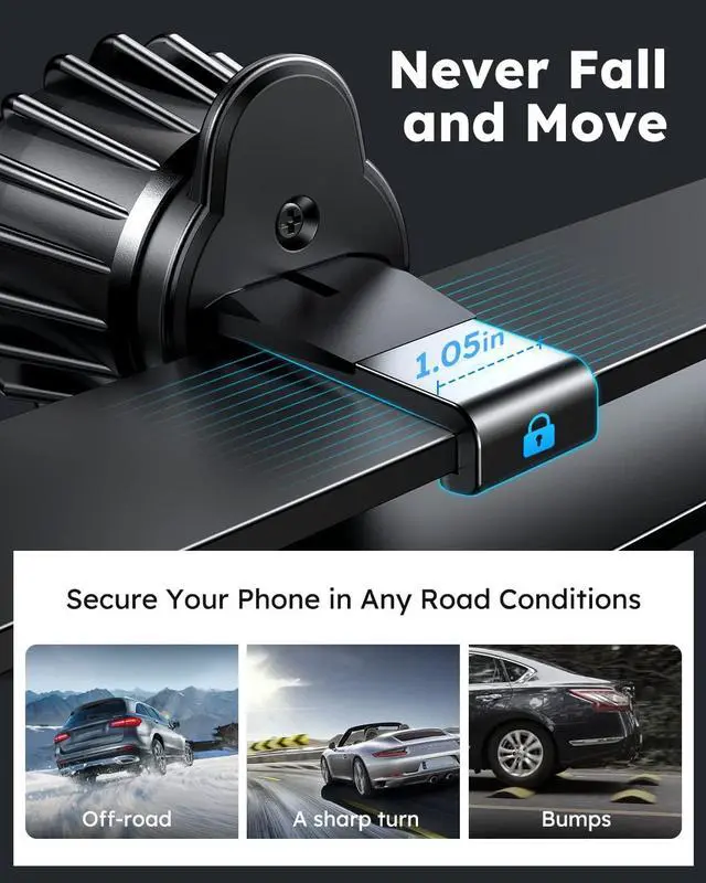 Equipped with a metal hook vent clip the phone mount for car wireless charger can firmly hold the air vent blade for no slippage or movement. Providing you with a safe and stable driving experience. Compatible with 99% vertical and horizontal vents.